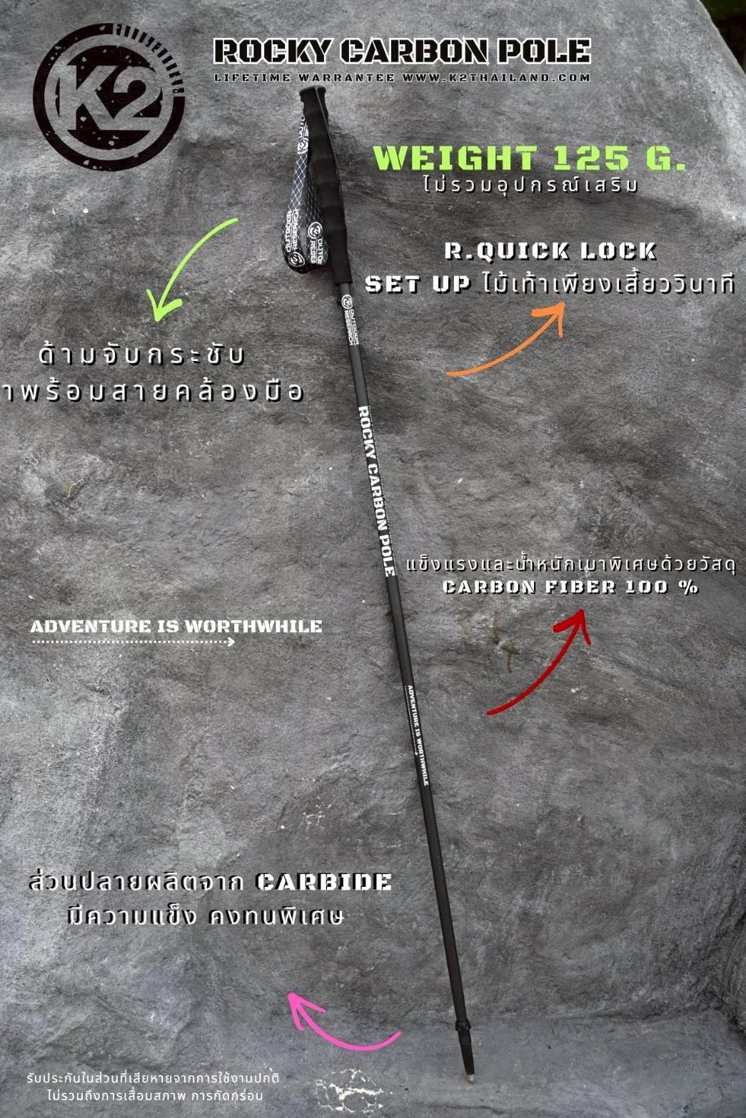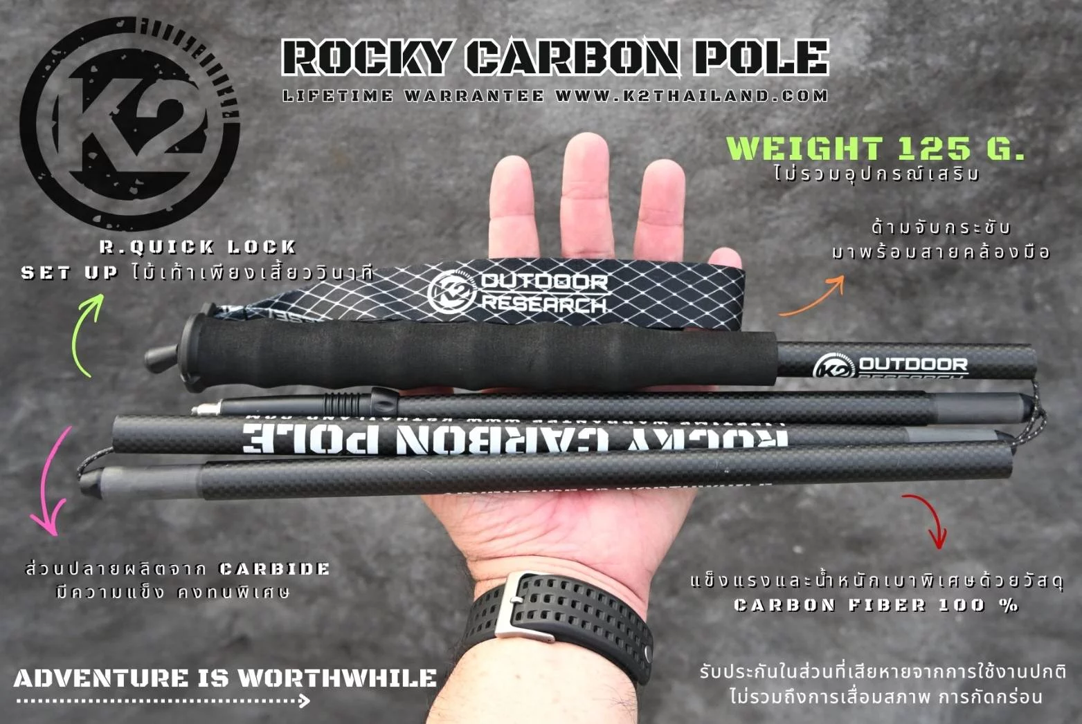 K2 ROCKY CARBON POLE : เบาที่สุด แกร่งที่สุด เพื่อทุกก้าวที่มั่นใจ เพิ่มความมั่นใจทุกเส้นทางด้วยไม้เท้าที่เกิดมาเพื่อ “สายเบา” โดยเฉพาะ กับเทคโนโลยีคาร์บอนไฟเบอร์แท้จาก K2 Outdoor Research