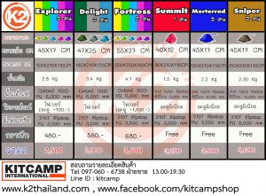 ตารางรายละเอียดเต๊นท์ K2